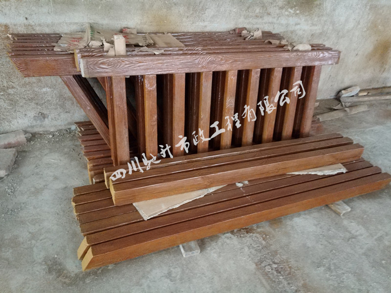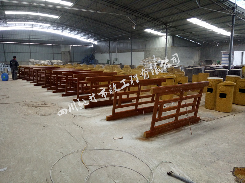 2016年10月,我司承接的甘肅省隴南市文縣碧口鎮農家樂仿木欄桿:《兩橫兩豎仿木欄桿》、《梯形仿木欄桿》、《中式仿木欄桿》。
