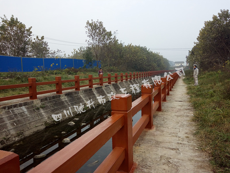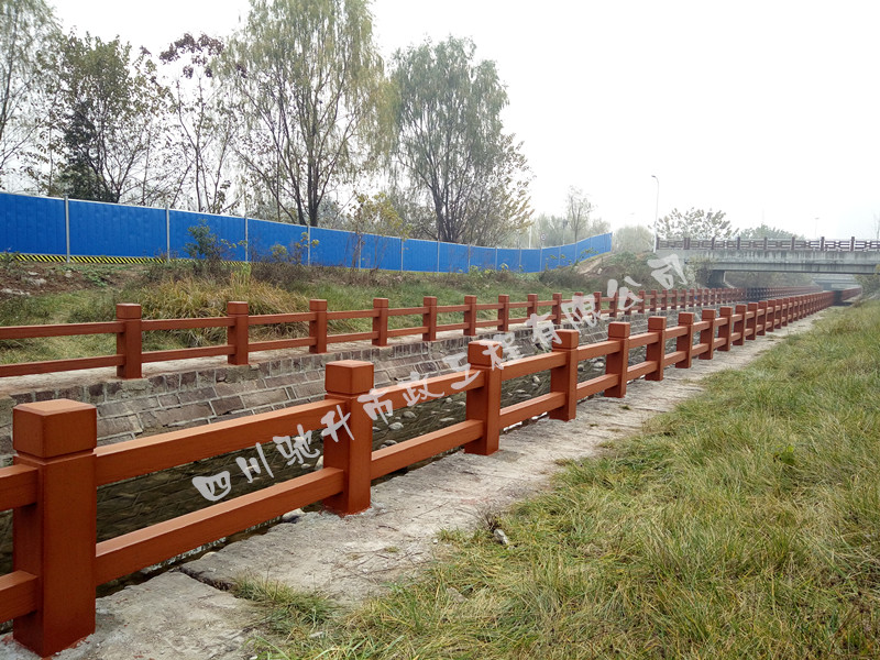 2016年12月,我公司承接的成都北湖公園防洪渠安全防護(hù)欄整治項(xiàng)目仿木欄桿工程450米已全面竣工驗(yàn)收合格!
